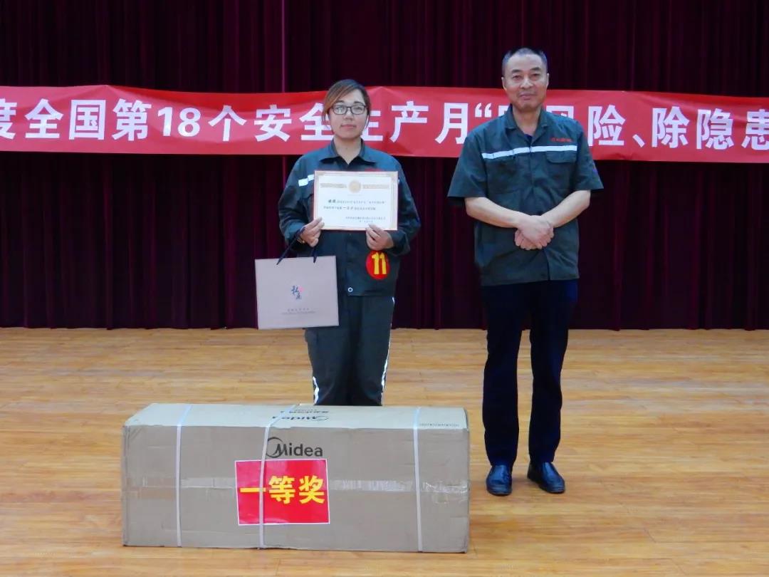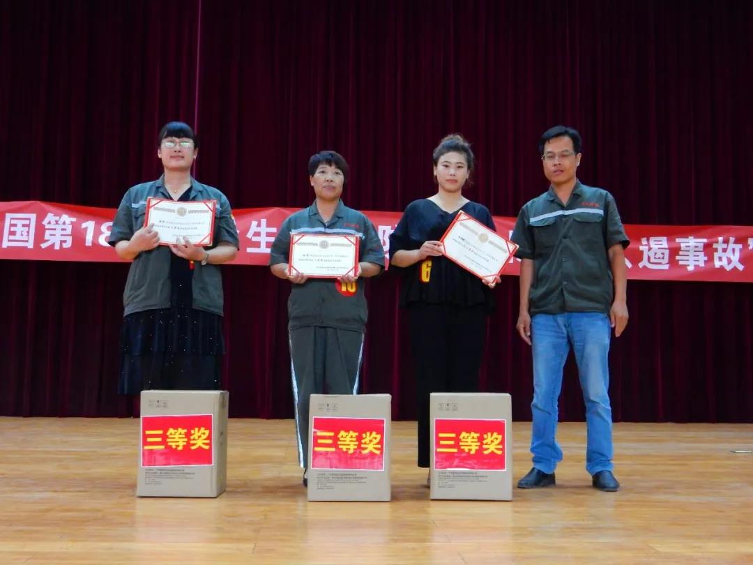 三等獎三名,由安環部杜部長為來自動力廠獲獎選手段冉、來自熟料廠的獲獎選手李潔和來自煉鋼廠的獲獎選手李艷琦分別頒發榮譽證書及獎品,并合照留念。