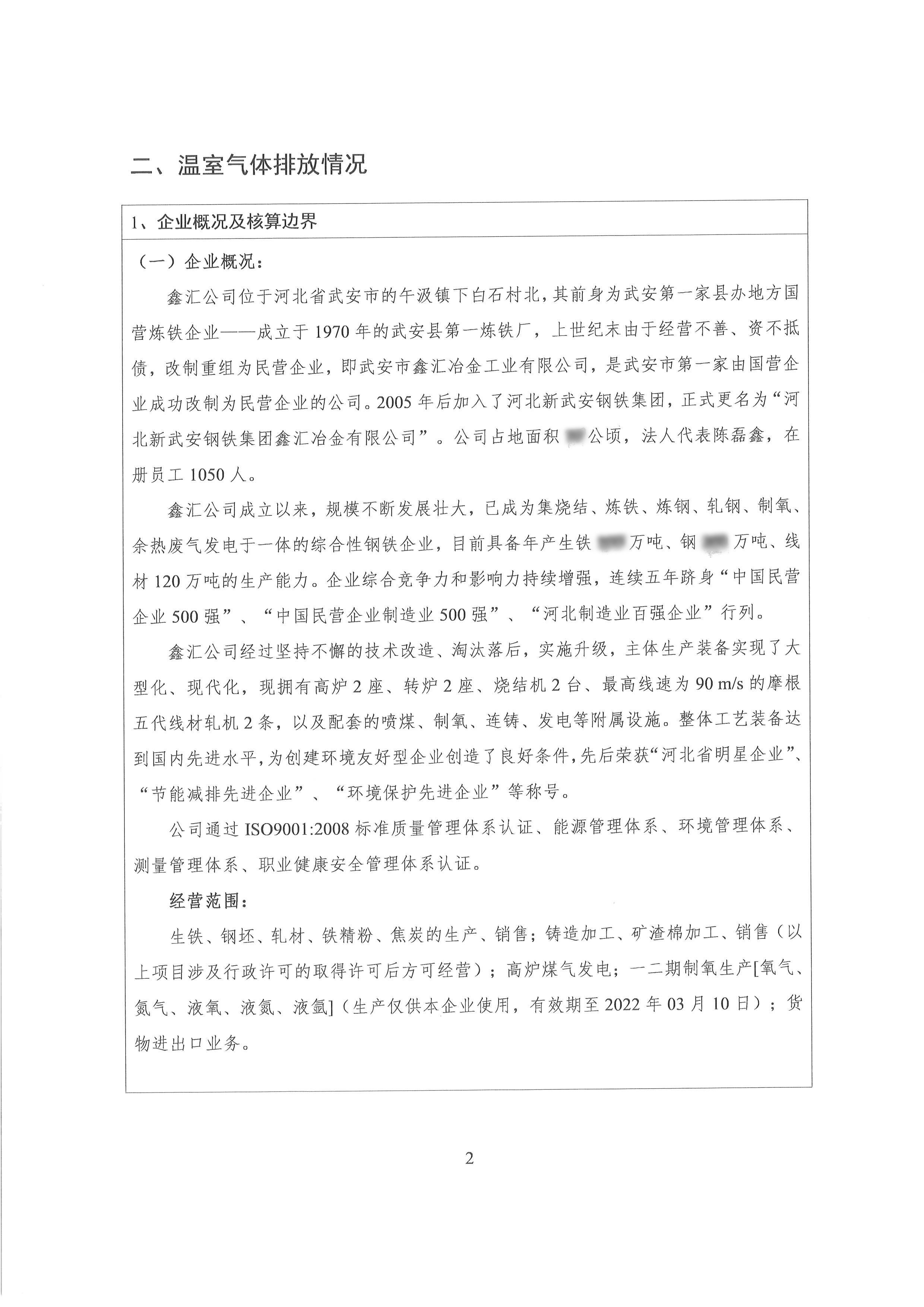 2022年河北新武安鋼鐵集團鑫匯冶金有限公司碳排放報告